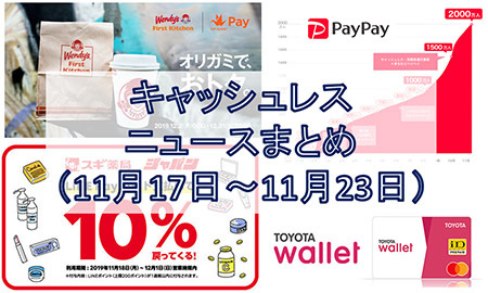 年末を間近に控え、小売店では年末商戦に向けた準備が着々と進んでいる。商戦を見据えているのはスマートフォン(スマホ)決済サービス各社も同様だ。対応店舗の拡大やお得なキャンペーンの展開など、新規顧客開拓のための施策を次々に発表している。11月17日~11月23日で話題になったキャッシュレスニュースを振り返る。