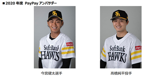ドーム改名日の発表と合わせて、新ロゴも公開。PRのために福岡ソフトバンクホークスの今宮健太選手と高橋順平投手が2020年度のPayPayアンバサダーに任命された。