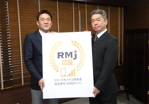 RMJ認証は、中古スマホ端末の品質や格付け、バッテリーの動作表記など決められたガイドラインに適合していることを外部有識者を含む審査機関が認めることで、消費者がリユースモバイル端末を安心して購入、売却できるようにする。まずは20年4月までに全国1000拠点での認証を目指す。