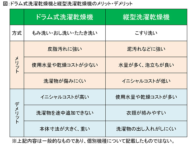 一方、縦型洗濯乾燥機は、(1)スポーツをしている家庭、(2)高齢者のいる家庭――などに適しているだろう。