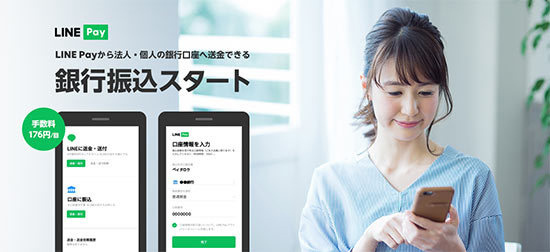 「LINE Pay」は12月9日に同サービスの送金機能に法人・個人の銀行口座へ振込できるサービスを追加。振込手数料は1回税込み176円。自分以外の他人の銀行口座に振込できるのは国内決済サービスで初となる。