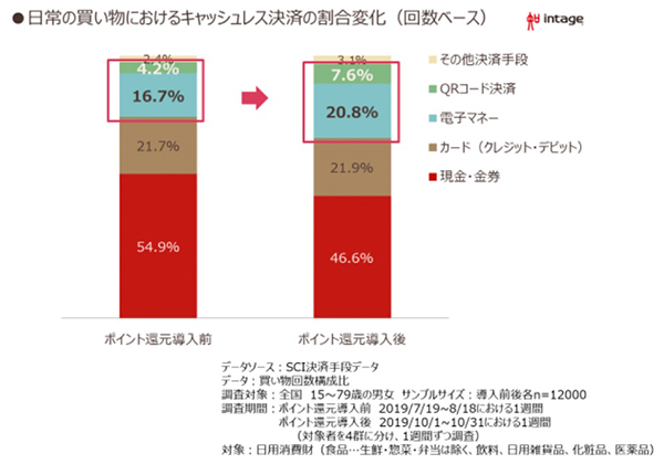 また、普段の買い物でのQRコード決済の割合が導入前の4.2%から導入後7.6%、電子マネー決済の割合が16.7%から20.8%にまで上昇したことも明らかになった。