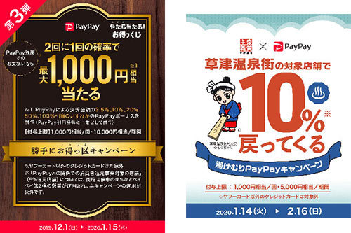 PayPayではこのほか、キャッシュレス・消費者還元事業の対象で5%還元が適用されている店舗で決済すると20回に1回の確率で最大1000円相当のPayPayボーナスが当たる「まちかどペイペイ第2弾」など、多数のキャンペーンを展開中。虎ノ門・西新橋エリア限定、草津温泉街限定といった地域限定のものもあるので、訪問する機会があるなら、ぜひ利用してほしい。