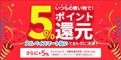 メルペイは店舗でメルペイスマート払いで支払うと、支払額の5%相当分をポイント還元する「メルペイスマート払い5%還元キャンペーン」を開催中。iD決済、コード決済、ネット決済の全てが対象(メルカリでの購入、Suicaチャージは対象外)で、ポイント還元の上限は期間中合計P1000まで。31日までの開催なので、他社のキャンペーンより時間の余裕はある。