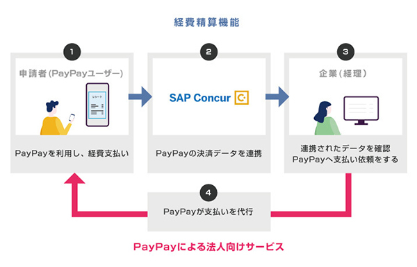 これまで経費精算は、個人が支払った経費情報をシステムに入力後、印刷や捺印、領収書の添付などが必要だった。しかも、企業側は提出された申請の内容を確認して個人に経費を支払うなど、双方に手間と時間がかかっていた。経費関連処理作業をPayPayでの支払いとコンカーによる決済データ連携を通じて行うことで、時間や場所を選ばず経費精算が可能となる。
