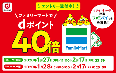 dポイントのキャンペーンは、ファミマとローソンを対象にしたポイントアップキャンペーン。還元は実質20%だ。キャンペーンにエントリーすることと、対象店舗での会計時にdポイントカードを提示することが条件。ファミマでの期間は1月28日~2月17日で、付与上限は3000ポイントとしている。ローソンでの期間は2月3~16日で、買い物1回当たりの付与上限が500ポイント、期間中の上限が2000ポイントとしている。それぞれで上限まで還元を受ければ合計5000円相当の還元だ。