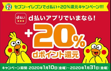 d払いのセブン限定20%還元は1月31日まで