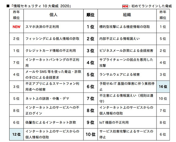 なお、情報セキュリティ10大脅威2020の詳しい解説は、2月下旬にIPAのウェブサイトで公開する予定。