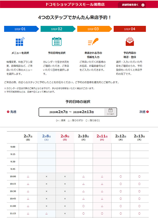 近隣店舗の来店予約の空き状況もわかるのはドコモだけ