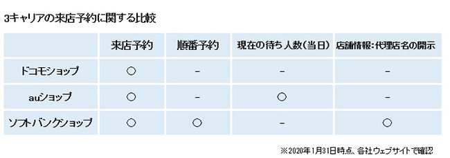 昨年末、夕方17時過ぎに訪れたソフトバンクショップ/ワイモバイルショップでは、この時間帯は予約者しか受け付けないと案内していた。確実に希望した時間帯に手続きしたければ、来店予約は必須である。そこで、大手3キャリア(ドコモ・au・ソフトバンク)のウェブサイトの情報をもとに、「来店予約」の申し込みフローと、店舗詳細ページのわかりやすさを比較した。