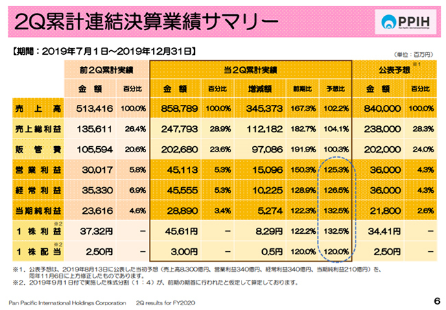 パン・パシフィック・インターナショナルホールディングス(旧ドンキホーテホールディングス)は、2月5日、2020年6月期第2四半期(19年7月~12月、2Q)の連結決算を発表した。
