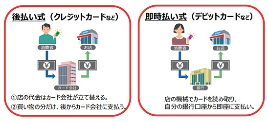 次に、デビットカード。「即時払い方式」を採用し、カードユーザーの与信審査がなく、高校生でも発行が可能だ。ただ、カード利用と同時に引き落とされるので、銀行口座に預金がなければ利用できない。