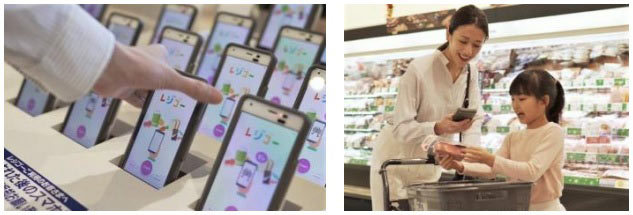 レジゴーは、顧客自身が貸出用の専用スマートフォン(スマホ)で商品のバーコードをスキャンし、専用レジで会計。自身でスキャンすることによって顧客のペースで買い物ができるほか、スマホ画面で購入商品の確認ができるため、買い忘れ防止にもつながる。