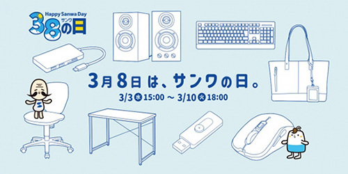 サンワサプライは、直販サイト「サンワダイレクト」で3月3日15時から3月10日18時までの8日間、3月8日「サンワの日」を記念したイベントを開催する。