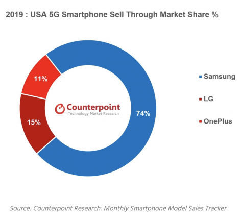 今回の調査結果によると、5Gスマートフォン(スマホ)初年度にあたる19年に米国で売れた5G対応機種は200万台を下回ってスマホ売上全体の1%に過ぎないものの、メーカーシェアではSamsungが同年の販売の74%を占め、Samsung Note 10 Plus 5Gが19年に米国で最も売れた。19年後半に強力なプロモーションを実施したほか、ユーザーの負担感を下げたことが要因の一つという。