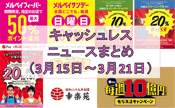 【今週のキャッシュレスニュースまとめ】PayPay・メルペイ・au PAYが高還元キャンペーンを展開中、利用前のチェックポイントは?