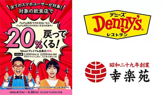 対象は1万店舗以上の飲食店。オリジン弁当、中華東秀、ガスト、グラッチェガーデンズ、しゃぶ葉、ジョナサン、バーミヤン、なか卯、華屋与兵衛、はま寿司、はなの舞、築地銀だこ、ウェンディーズ、ファーストキッチンなどのチェーン店が対象になるようだ。3月18日にはデニーズと幸楽苑が4月1日からPayPayに対応、「全国の有名飲食チェーンが対象!春のグルメまつりキャンペーン」の対象になることが発表された。