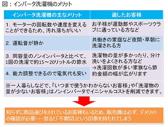 いくら購入時の金額が安くても、使っている耐用年数中、漠然とした不満を抱きながら使い続けるのは不幸なことだ。分かりにくければ販売員に相談してほしい。そのために販売員はいるのだし、「この商品にして良かった」という快適さを実感しながら家電製品を使っていただければと思う。(堀田経営コンサルタント事務所・堀田泰希)