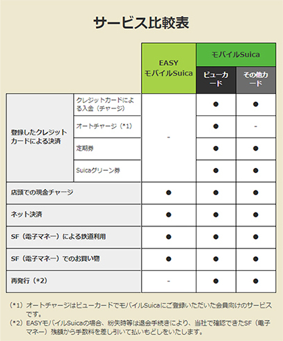 EASYモバイルSuicaでできることは、駅のコンビニのNEWDAYSなどで現金の入金(チャージ)と、チャージした電子マネーでの買い物と鉄道利用、ネット決済の四つだ。クレカとの連携が必須のモバイルSuicaは、これにクレカからのチャージや定期券、Suicaグリーン、再発行の機能が加わる。