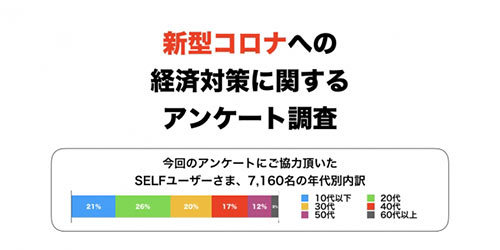 SELFは、スマートフォン向け人工知能アプリ「SELF」で、「新型コロナウイルスへの経済対策」についてアンケート調査を行い、3月30日に調査結果を発表した。アンケートでは、現金給付についても質問した。