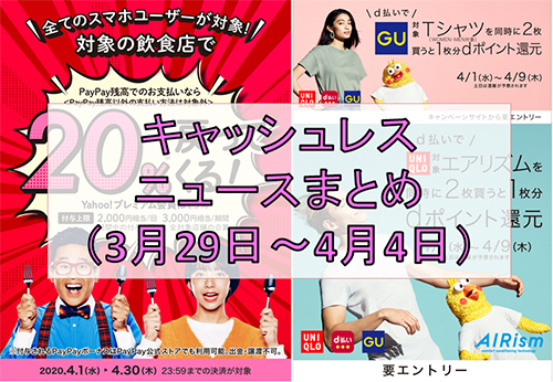 【今週のキャッシュレスニュースまとめ】4月はPayPayで外食がお得! d払いはユニクロ・GUとコラボキャンペーン実施中