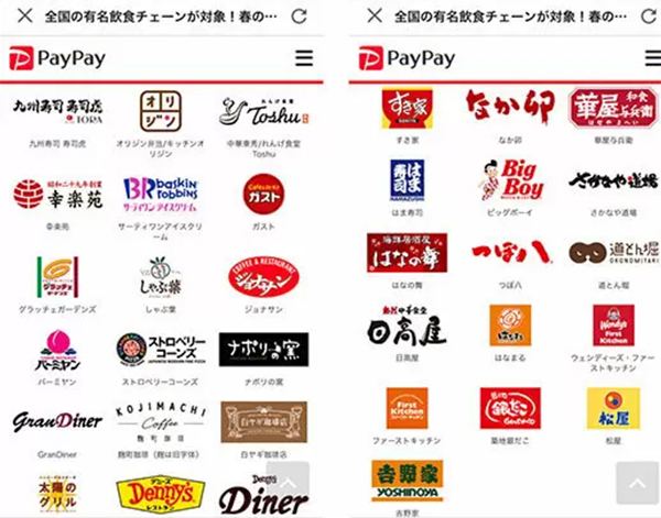 対象は1万店舗以上の飲食店。対象店舗は、キャンペーンサイトで公開中。牛丼チェーンやサーティーワンアイスクリームなど前回も対象となった店舗に加えて、3月に対応したガストやジョナサンなどのファミリーレストラン、4月に対応したはま寿司やビッグボーイなども対象になっている。