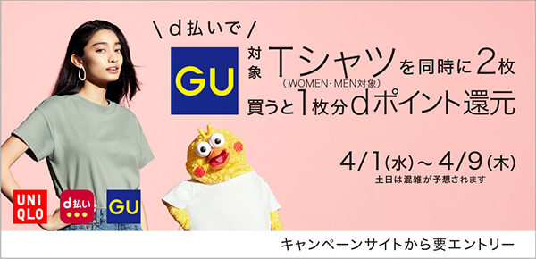 d払いはユニクロとGUでキャンペーン、4月9日まで