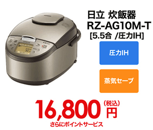 ビックカメラ.com限定の「新生活応援特価」キャンペーンが本日の4月7日23時59分で終了する。アイリスオーヤマの6畳用エアコン「IRR-2219C-W」が税込3万8000円、日立の圧力IHジャー炊飯器「RZ-AG10M-T(5.5合)」が1万6800円など、新生活のお買い得商品が盛りだくさんのキャンペーンだ。