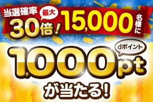 dポイントクラブの「プラチナクーポン」に、抽選で毎月1万5000人にdポイント1000ポイント(1000円相当)が当たる「dポイントが当たる!」が加わった。
