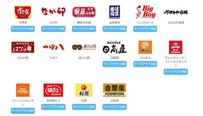 外出自粛でなかなか利用する機会がないというユーザーに注目してほしいのが、アプリの対象店舗一覧だ。現在、店舗ロゴの下に「テイクアウト対応」「在宅対応」と表示が出ており、キャンペーンを利用できる場所が探しやすいようになっている。