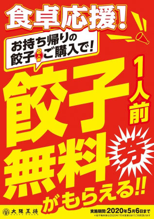 テイクアウトで餃子無料券がもらえる! 大阪王将の「食卓応援キャンペーン」