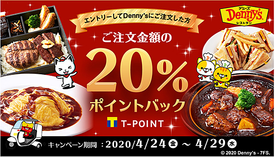 対象店舗は出前館に出店しているデニーズ全店舗。還元されるポイントは、約1カ月の有効期限で出前館での利用限定のTポイント。5月中旬に進呈する予定。キャンペーンに参加するにはエントリー登録する必要がある。