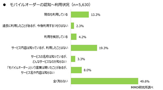 MMD研究所は、18~69歳のスマートフォンを利用する男女5630人を対象に4月7~13日の期間で「2020年4月 モバイルオーダーに関する利用動向調査」を実施した。