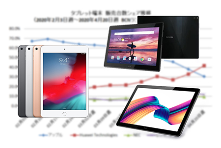 全国の家電量販店やECショップでPOSデータを集計する「BCNランキング」によると、4月のタブレット端末の販売台数は前年同月比94.3%。実に2019年1月以来、1年3か月ぶりの前年割れとなった。新型コロナウイルス感染拡大の影響で需要は増しているが、家電量販店の営業自粛やトップシェアであるiPadの在庫不足が大きく響いた形だ。