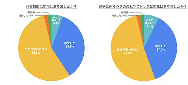 配送員に対するアンケートでは、40.8%が「OKIPPA」によって配達にかかる作業時間が減り、44.4%が配送に伴う心身の疲れやストレスが減少したと答えている。