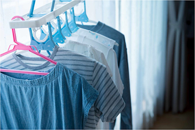 なお、F-YHTH90を使って上手に洗濯物を干す方法は、洗濯物の間はこぶし1個くらいの距離にして、中央に短い衣類、外側に丈の長い衣類というようなアーチ型だという。