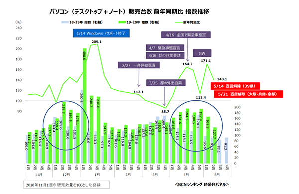 宣言の解除がPC市場にどのような影響を与えるのか、引き続きウォッチしていこう。(BCN・細田 立圭志)