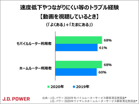 新型コロナウイルス感染症への対策として、自宅で過ごす時間が増えたことで、インターネットを利用するためにモバイル回線を利用した「Wi-Fiルータ」(モバイルルータ、ワイヤレスホームルータ)の需要が増大している。一方、J.D.パワージャパンの調査によると、満足度は低下傾向にあるという。顕著なのが、“通信速度”だ。