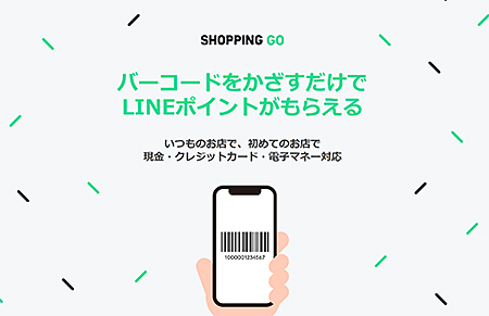 SHOPPING GOは、実店舗での商品購入時に、LINE内に表示される専用のバーコードを提示すると、LINEポイントが付与されるサービス。ファッションブランド「earth music&ecology」や、ビックカメラグループの「ビックカメラ」「コジマ」「ソフマップ」、ヤマダ電機グループ、上新電機、メガネスーパーなどが導入済み。