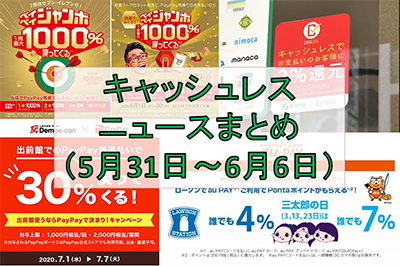 【今週のキャッシュレスニュースまとめ】PayPayやau PAYの新キャンペーン開催中! キャッシュレス消費者還元事業は今月まで