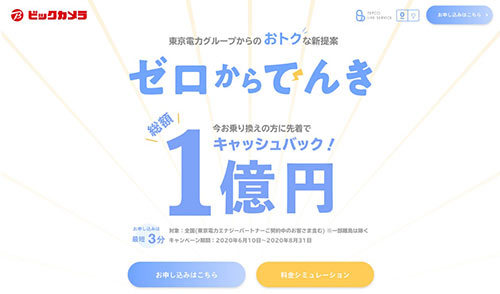 また、ゼロからでんきの全国エリアでの提供に合わせ、TEPCOライフサービスのサイトに加え、ビックカメラの通販サイト「ビックカメラ・ドットコム」のキャンペーンサイトでの申込受付を開始する。
