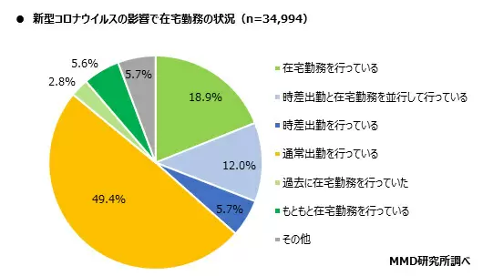 約5割の人が新型コロナの影響で在宅勤務を実施