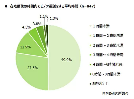 在宅勤務での「ビデオ通話/ウェブ通話」利用では1時間未満の短い会話が多い