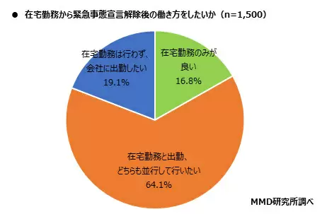 緊急事態宣言解除後は在宅と出勤の並行での働き方を希望する人が多い