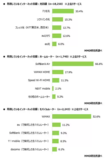 「光回線」7.3%、「ホームルーター」15.0%、「モバイルルーター」14.3%