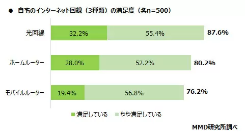 「光回線」「ホームルーター」「モバイルルーター」いずれも7割を超える