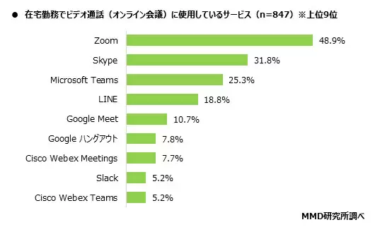最もよく使われるビデオ通話(オンライン会議)サービスは「Zoom」