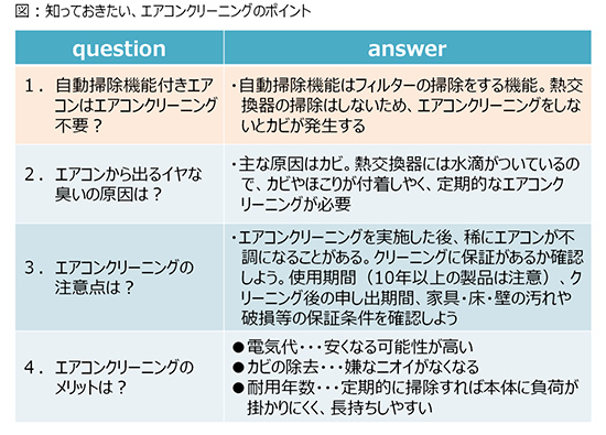 このほかにも、クリーニングで熱交換器に入り込んだホコリやカビを除去することで、エアコンの運転中に掛かる負荷が低減し、電気代の削減や耐久年数の向上につながるというメリットもある。
