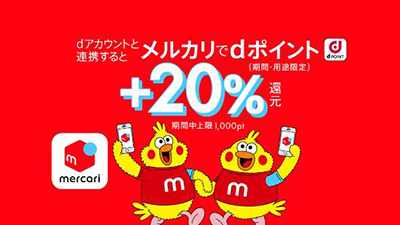 また、d払いユーザーならメルカリとのコラボレーションキャンペーンをチェックしておきたい。同サービスとdポイントの連携を記念した「dポイント最大+20%還元キャンペーン」が6月15日からスタートする。メルカリとdアカウントを連携して、商品を購入すると、通常ポイントに加えて購入金額の20%分の期間限定・用途限定dポイントを付与する。還元上限は1000円相当。