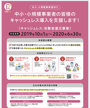 経済産業省は6月11日、キャッシュレス・ポイント還元事業(キャッシュレス還元事業)が当初の予定通り、2020年6月30日をもって終了すると発表した。キャッシュレス還元事業の実施店舗には事業終了後、自治体の指定に沿って、ポスターやステッカーなど、店頭用広報ツールの廃棄を求めている。